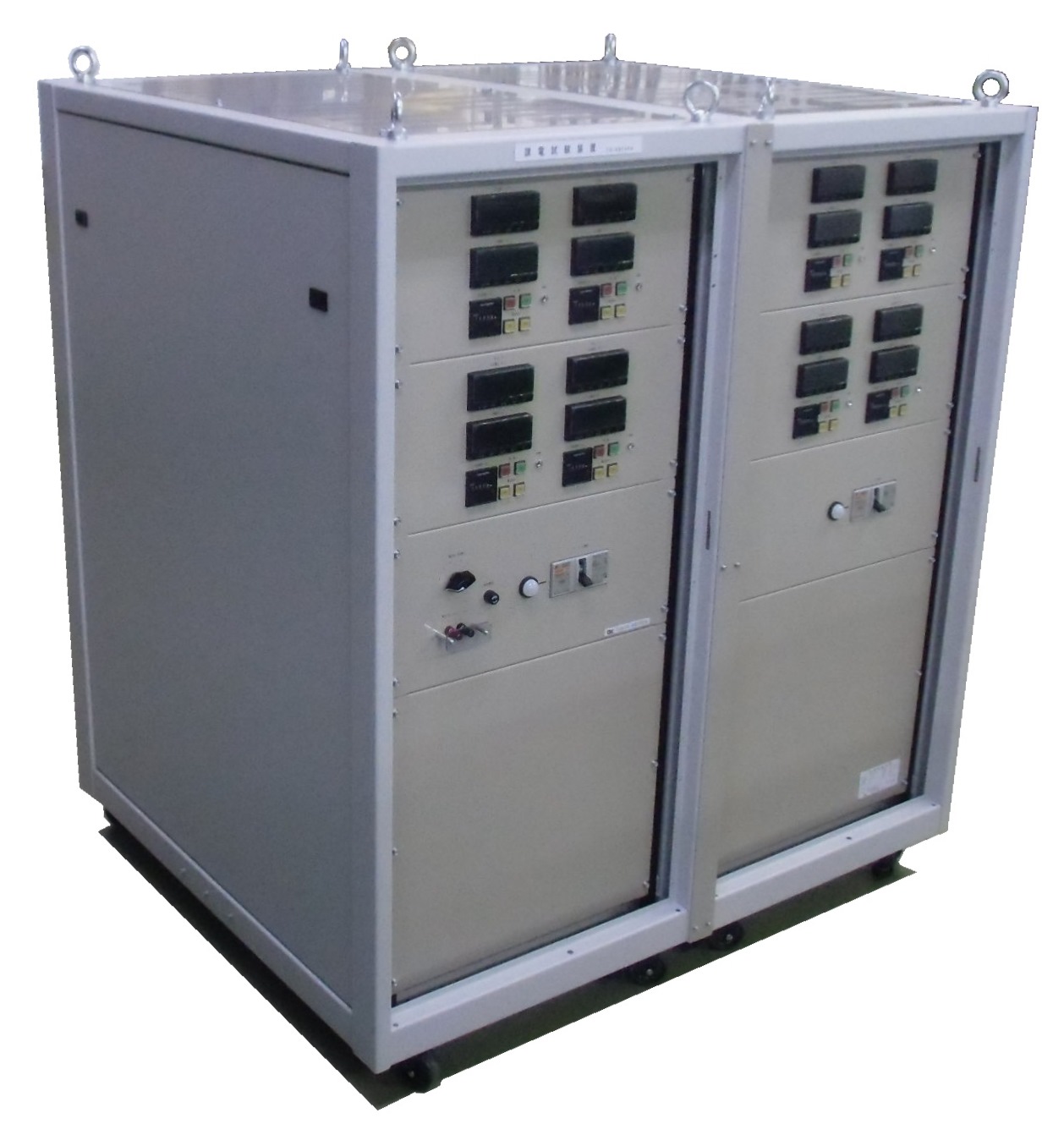本装置は、操作盤、摺動型定電圧電源、及び高電圧変圧器8台で構成された高電圧印加試験装置です。