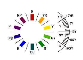 (1).色相には10色の系統があり、下表記号であらわす。